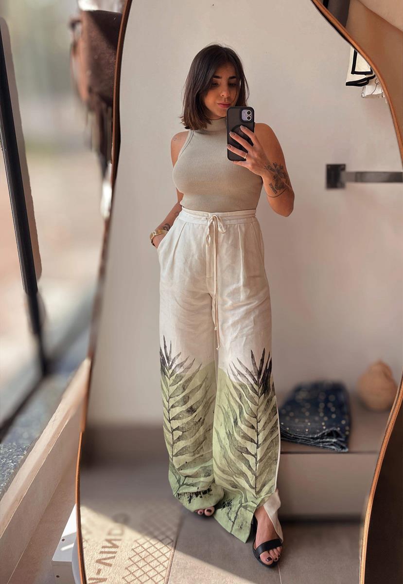Elegante e atemporal, a pantalona é confeccionada em tecido leve e respirável, com corpo em 80% viscose e 20% linho, garantindo conforto e caimento impecável. O forro 100% viscose traz mais segurança e suavidade ao vestir.
