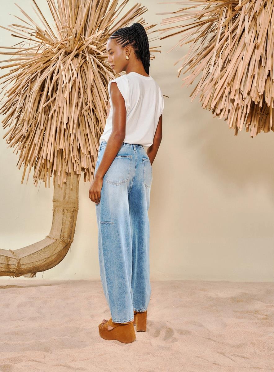 A calça jeans baggy é sinônimo de estilo descomplicado. Confeccionada em 100% algodão, garante estrutura e conforto ao mesmo tempo. Sua modelagem ampla traz caimento moderno e versátil, perfeita para compor produções casuais ou urbanas. O forro macio oferece ainda mais conforto no dia a dia, tornando-a uma peça essencial no guarda-roupa feminino.