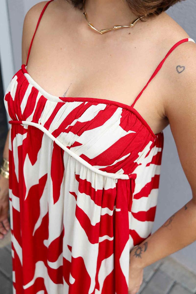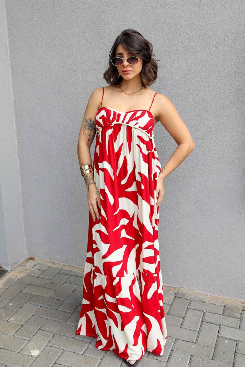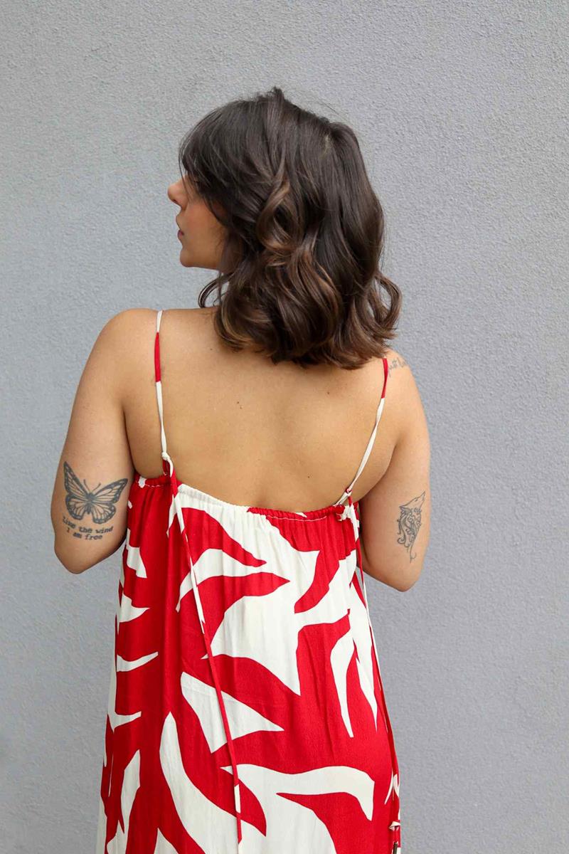 eito em 100% viscose, este modelo une leveza, fluidez e sofisticação em cada detalhe. Com modelagem ampla que proporciona conforto e movimento, possui alças finas ajustáveis em amarração para um caimento perfeito. O busto recebe um delicado franzido que valoriza a silhueta, enquanto a estampa exclusiva garante um visual moderno e cheio de personalidade