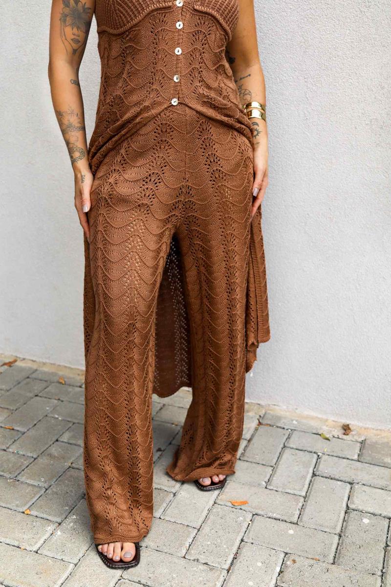A Calça Tricot Brisa é confeccionada em malha macia e confortável, composta por 97% acrílico e 3% elastano, que garante elasticidade e caimento perfeito. Em tom marrom, traz sofisticação e versatilidade, podendo ser usada em looks casuais ou elegantes. Sua modelagem moderna proporciona estilo e praticidade para o dia a dia.