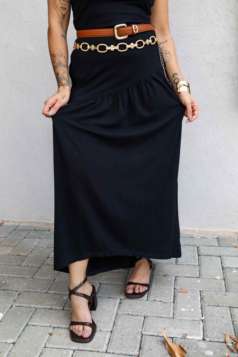 Confeccionada em malha leve e confortável (96% viscose, 4% elastano), esta saia traz caimento fluido e toque macio. O franzido delicado adiciona movimento e charme, enquanto a barra assimétrica dá um toque moderno e sofisticado ao visual. Versátil, é perfeita para looks do dia a dia ou ocasiões especiais, combinando facilmente com blusas básicas, tops estruturados ou camisas.